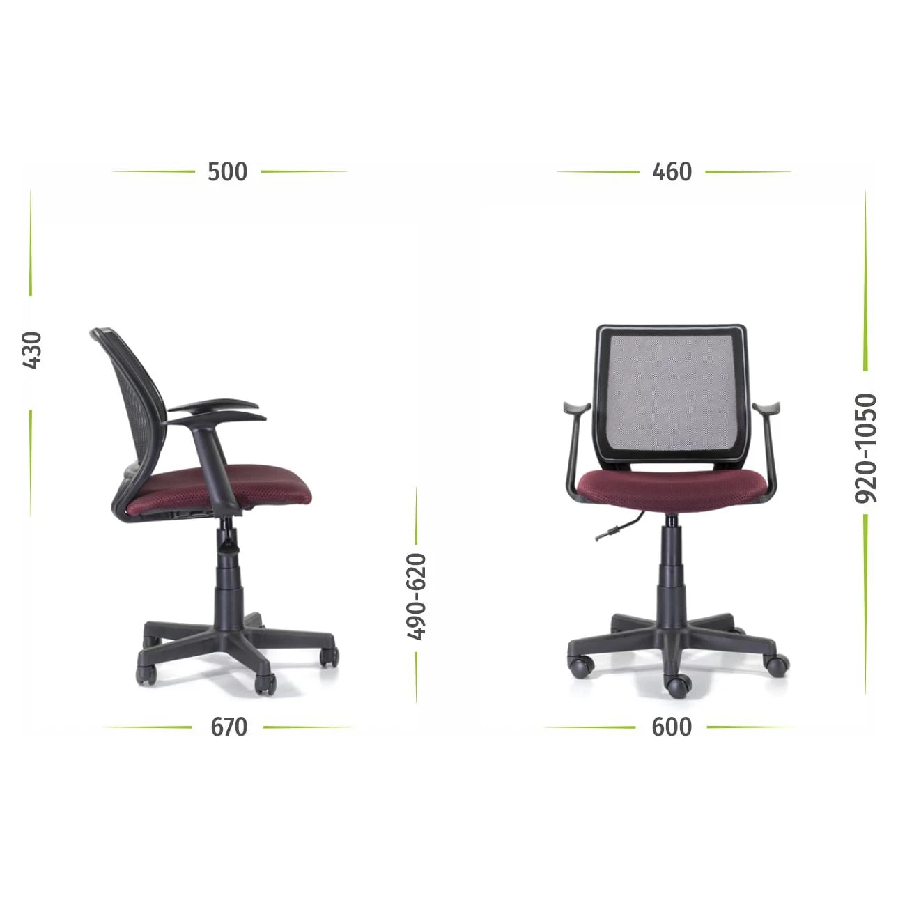 Подлокотники: пластиковые