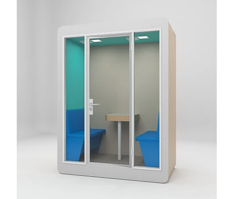Высококачественные материалы и внимание к деталям обеспечили высокий уровень шумоизоляции, что крайне важно для комфортной работы в условиях офиса. Каждая кабина оснащена всем необходимым для удобства сотрудников: розетками, USB-портами, разъёмами Type-C, встроенным столиком и удобными местами для сидения. Для поддержания комфортного микроклимата предусмотрена система вентиляции, что позволяет использовать кабины продолжительное время без потери комфорта.